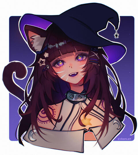 While working on some magic in her tower, the Wizard tripped and managed to launch a potion up into the air, which promptly fell onto her and her cat who was loafing about nearby. This potion caused the two to get very switched around and the Wizard became part cat and the cat became part Wizard!The Wizard attempted to fix her predicament by consuming a variety of potions but this only turned her mouth purple and allowed for her to change her front paws to hands.We can see various areas within Wizri's Order (Discord Server) on stream!~ Like part of the observatory (chatting), the potion room (chatting), the view from the roof of the tower (chatting), and the library (reading).The Order and its Archmage provide help to the aspiring wizards within it to aid in their own magical journeys!